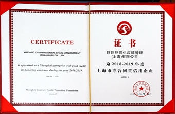 日前,鈺翔控股集團旗下鈺翔環(huán)保供應(yīng)鏈管理(上海)有限公司、上海久源經(jīng)貿(mào)發(fā)展有限公司被評為“2018-2019年度上海市守合同重信用企業(yè)”,并榮獲AAA級合同信用等級認定。